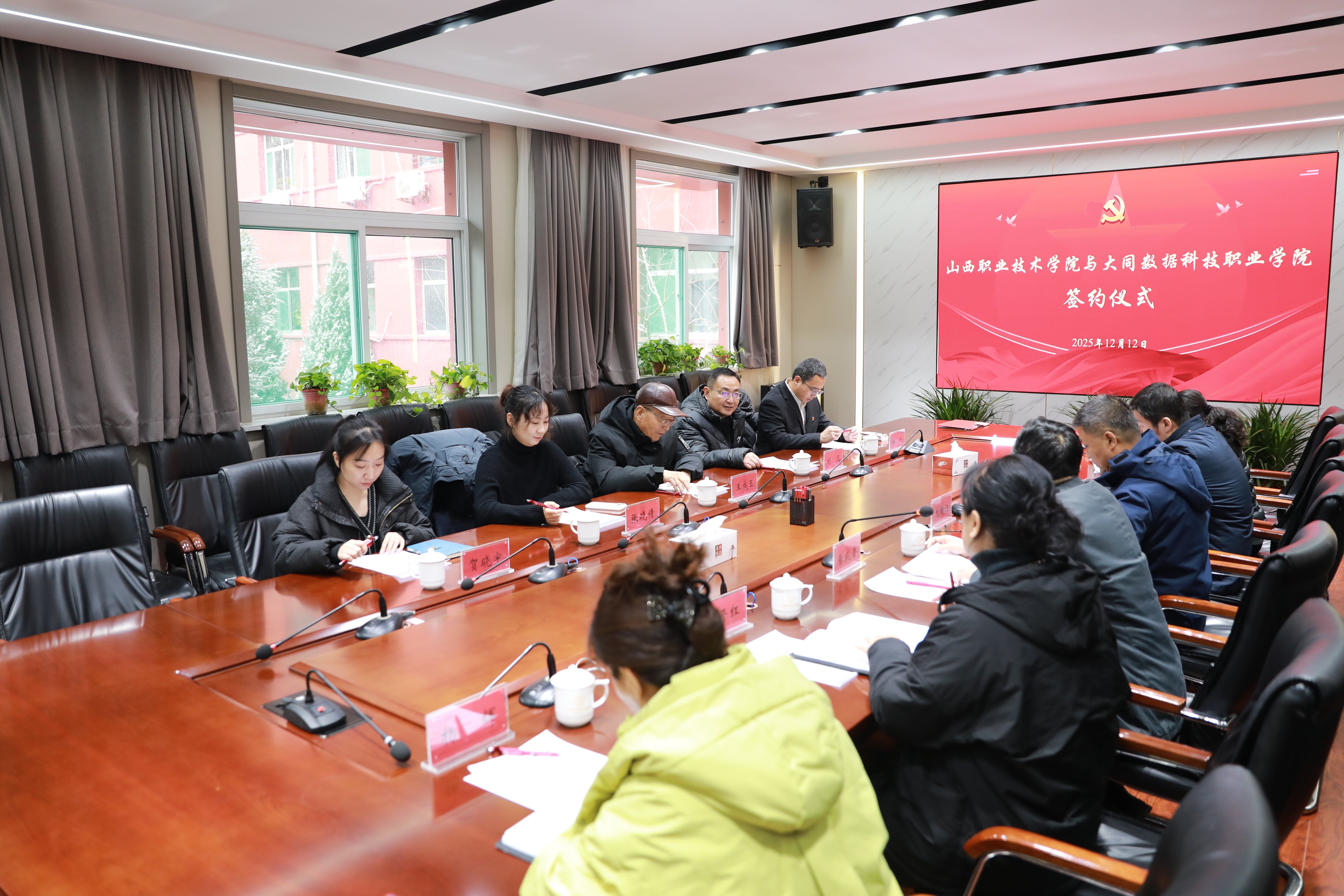 为深入贯彻落实省委教育工委关于公办与民办高校党建和思想政治工作结对共建的工作要求,12月12日上午,学院与大同数据科技职业学院党建共建签约仪式在我院坞城校区二层会议室隆重举行。大同数据科技职业学院专职党委副书记王成玉、副院长刘凡一行,学院党委副书记尤陶江、组织人事部部长张武奎等相关部门负责人出席仪式。