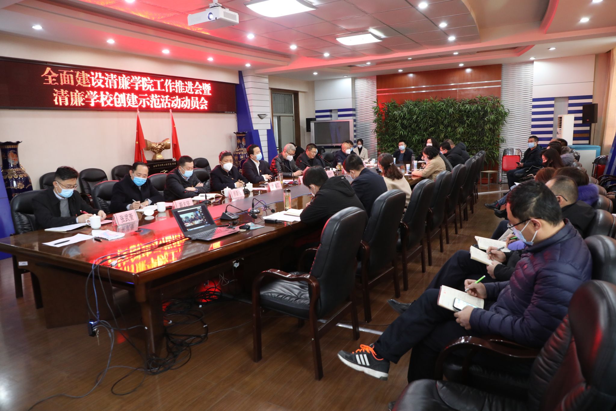 为全面贯彻落实党的二十大精神,贯彻落实省委教育工委“全省教育系统全面建设清廉学校工作推进会暨清廉学校创建示范活动动员部署会”精神,12月10日下午,我院在坞城校区四楼会议室召开清廉学院工作推进会暨清廉学校创建示范活动动员会。学院党委副书记、院长何秋生主持会议,院领导、党委委员,各党工委书记、主任,各系部书记主任,各职能部门负责人通过线上线下相结合的方式参加会议。